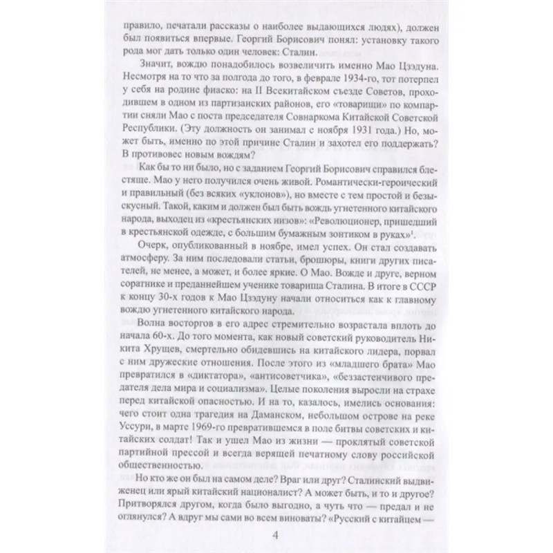 Исторические личности заслуживают объективных биографий, хотя задача написания таких биографий невероятно сложна. О Мао написаны сотни книг и статей, романов и повестей, сняты фильмы, созданы интернет-сайты. Кажется, изучено всё до мельчайших подробностей, но ответов на многие вопросы о нем до сих пор нет. Разобраться с некоторыми из них помогает биография Великого Кормчего, написанная на основе не только официальных документов, а рассказов людей, хорошо его знавших лично. Книга охватывает период до конца 1930-х годов, когда Мао становится одним из лидеров китайских коммунистов.