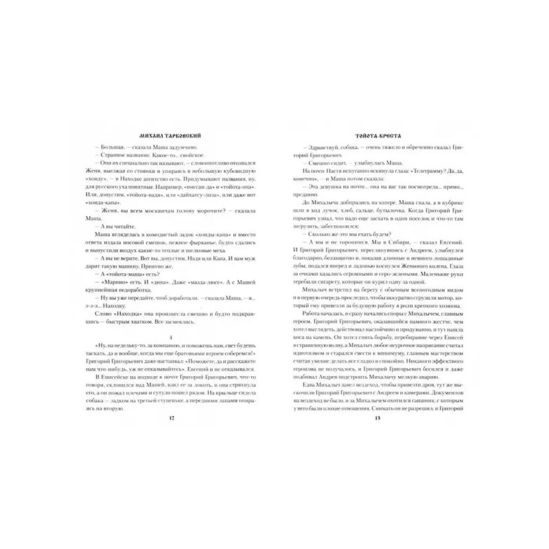 ISBN 9785-4484-38370. Тойота - Креста. Действие романа лауретата премии "Ясная Поляна", премии Антона Дельвига "За верность Слову и Отечеству" и ряда других литературных премий Михаила Тарковского разворачивается на всём русском пространстве - от Курил до Москвы. Автор сам проделал путь от Владивостока до Красноярска, в одиночку перегоняя зимой только что купленный "сурф" Он делал это столь же безоглядно, как тридцать лет назад, когда навсегда уехал из столицы в сибирскую глухомань "Никакого дешёвого геройства не было. Если у тебя есть страсть, мечта и ты её осуществляешь, то просто идёшь по пути наименьшего сопротивления. Я делал, что хотел, вот и всё" - так позже Тарковский объяснял свой биографический зигзаг. Сначала из москвича он сделался сибиряком и охотником, потом перестал быть "внуком" и "племянником", став известным писателем Михаилом Тарковским. Этот роман - и лиричная, и пронзительная, и в то же время возвышающая, очищающая проза. Разрозненные, места невеликого скопления русских людей оказываются прочно соединены друг с другом некоей внутренней связью. И в то же время этот раскиданный человеческий архипелаг кажется гигантским, континентального размера трагическим "распилышем", и сама "креста" не случайно рифмуется у автора с русским крестом.