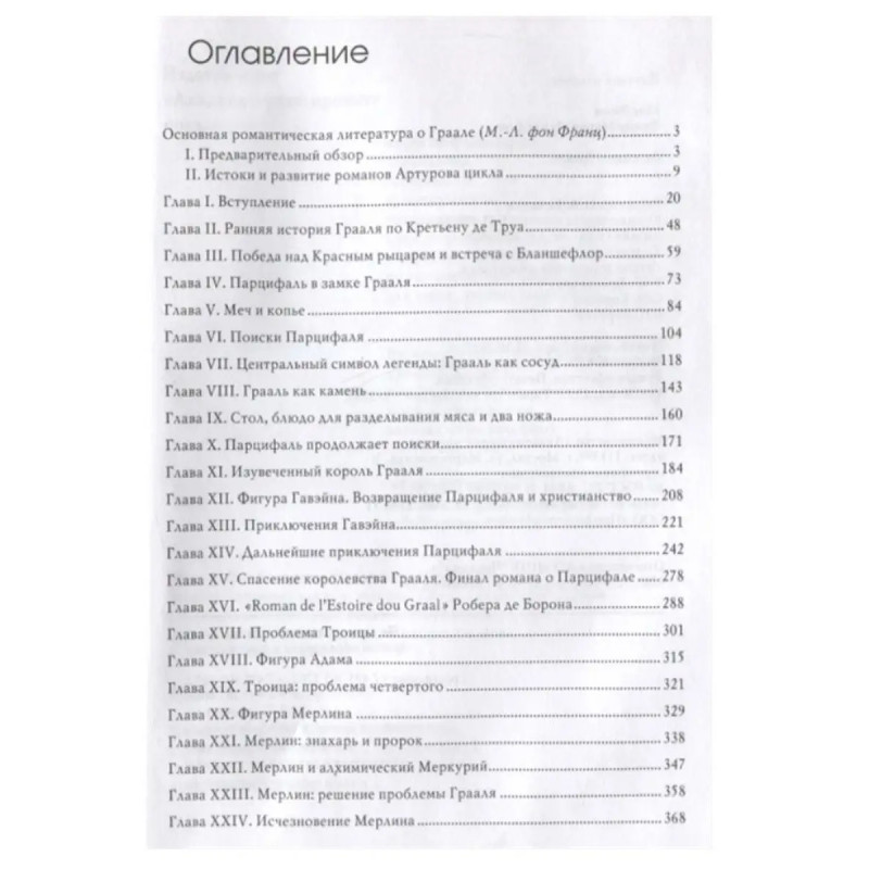 ISBN 9785-8291-39605. Легенда о Граале. Фон Франц М-Л. Эмма Юнг (1882-1955), супруга основоположника аналитической психологии Карла Густава Юнга, и Мария-Луиза фон Франц (1915-1998), его многолетняя соратница и ближайшая коллега, потратили на написание этой книги более 30 лет. Именно с юнгианской точки зрения обе исследовательницы препарируют и многочисленный материал легенд о Граале. Подобно глубокому символизму алхимии, эти фольклорные фантазии и их символика живописуют сущностные, бессознательные психические процессы. Под прицелом внимания авторов книги оказывается прежде всего сочинение средневекового французского поэта Кретьена де Труа, первооткрывателя куртуазного романа и составителя старейшей из известных компиляций о Граале. Поверье о магическом артефакте, дарующем здоровье и процветание, который сокрыт в труднодоступной земле, в затерянном замке тяжелобольного Короля, вызывает неослабевающий интерес у широкой аудитории на протяжении вот уже восьми столетий. Архетипический мотив поисков клада вступает в нем в причудливую взаимосвязь с драмой крестного пути Сына Божия: по преданию, заветное сокровище представляет собой сосуд, в который Иосиф Аримафейский собрал пролитую кровь Иисуса Христа. Таким образом сказание о Граале освещает не только фундаментальные человеческие проблемы, но и трагические события, формирующие фон христианской культуры. Благодаря такому парадоксальному синтезу история о рыцарях, жаждущих испить из чудотворной чаши, до сих пор остается живым литературным явлением.