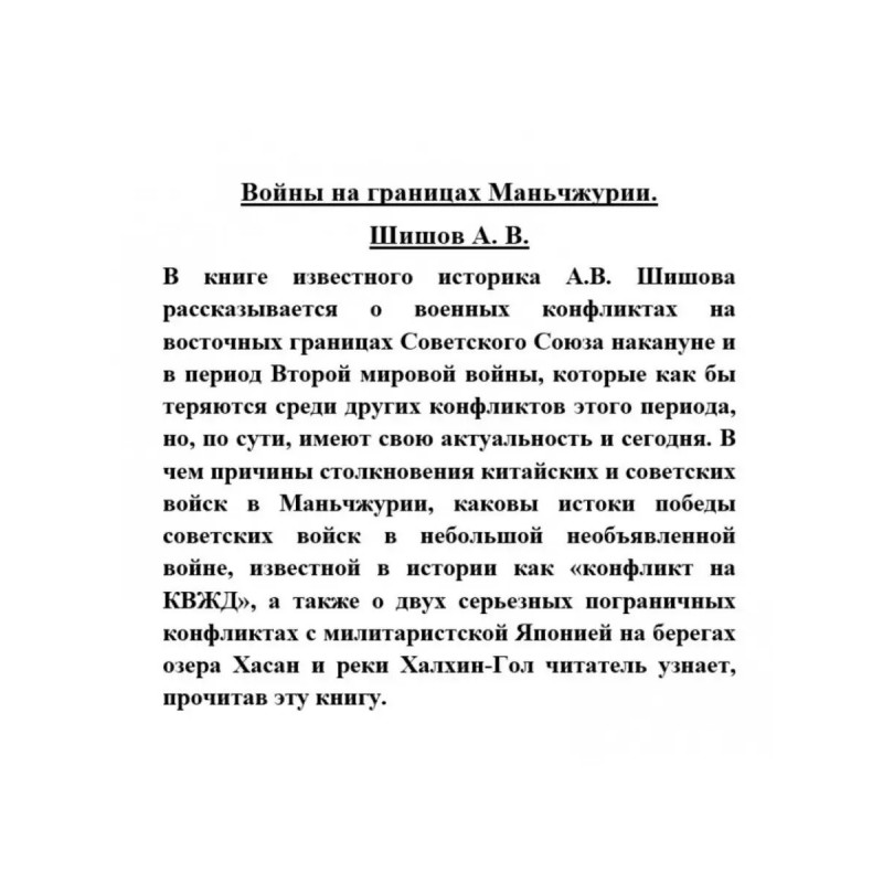 ISBN 9785-44844-0380. Войны на границах Маньчжурии. Войны на границах Маньчжурии. Шишов А. В. В книге известного историка А. В. Шишова рассказывается о военных конфликтах на восточных границах Советского Союза накануне и в период Второй мировой войны, которые как бы теряются среди других конфликтов этого периода, но, по сути, имеют свою актуальность и сегодня. В чем причины столкновения китайских и советских войск в Маньчжурии, каковы истоки победы советских войск в небольшой необъявленной войне, известной в истории как "конфликт на КВЖД", а также о двух серьезных пограничных конфликтах с милитаристской Японией на берегах озера Хасан и реки Халхин-Гол читатель узнает, прочитав эту книгу.