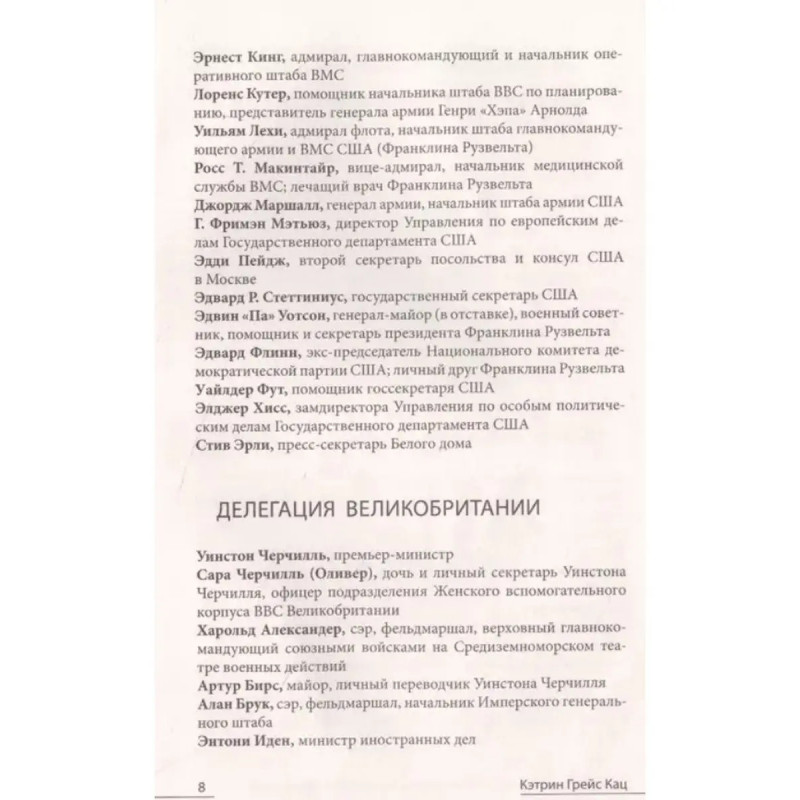 Дочери Ялты. Черчилли, Рузвельты и Гарриманы: история любви и войны. Кац К. Кэтрин Грейс Кац американский историк, выпускница Гарвардского и Кембриджского университетов. В своей книге Дочери Ялты. Черчилли, Рузвельты и Гарриманы: история любви и войны автор воссоздает события восьмидневной Ялтинской конференции, на которой решилась судьба послевоенного мира. Из книги читатель узнает о том, какими представали события конференции с точки зрения дочерей главных ее участников - Кэтлин Гарриман, Сары Черчилль и Анны Рузвельт и о том, какой была повседневная жизнь жителей Ливадийского дворца. Книга будет интересна всем, кто хочет узнать больше о Второй мировой войне и событиях мировой истории конца 1940-х годов. Книга небольшого формата, легкая, что позволяет взять ее с собой в дорогу.