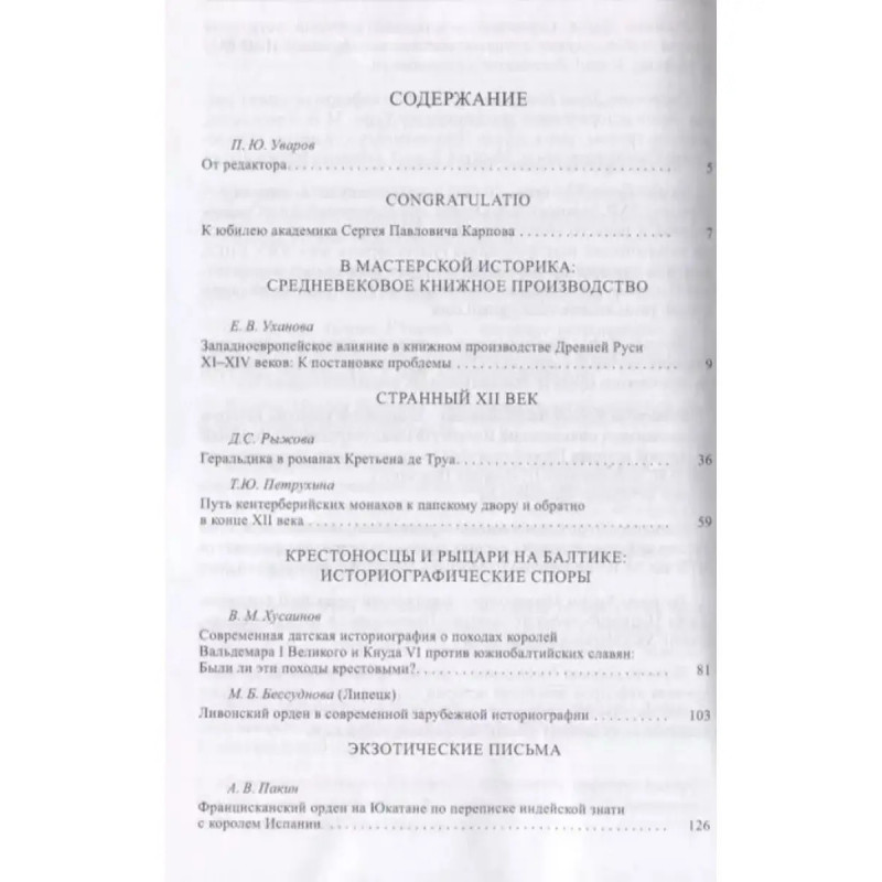 Средние века. Выпуск 79 (1). Выпуск открывается блоком статей, посвященных культурным и дипломатическим контактам России и Запада. Особое место занимает история XII столетия - времени появления геральдики, рыцарских романов, оформления системы папского правосудия. В данном выпуске много места уделяется проблемам Крестовых походов на Балтике и организации власти в орденских землях. Традиционными являются разделы: публикация источников (письма индейских касиков испанскому королю), раздел, посвященный истории медиевистики, научные дискуссии, рецензии и аннотации. . Для историков и широкого круга читателей-гуманитариев. .