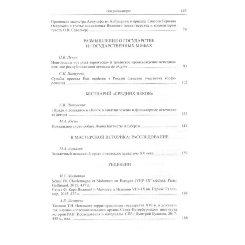 Средние века. Выпуск 80 (1). В выпуске содержится блок статей, раскрывающих отношения средневековых епископов с их окружением, в частности с канониками. О становлении канониката как институции средневековой церкви ранее были опубликованы статьи в нескольких предыдущих номерах. Особый раздел составляют статьи, посвященные анализу раннесредневековых памятников, созданных на Британских островах. Традиционно важное место занимают размышления о средневековых государствах и государственной мифологии. Публикуется также интересное историческое расследование о награждении литовского шляхтича XV в. испанским орденом. Для историков и широкого круга читателей-гуманитариев.