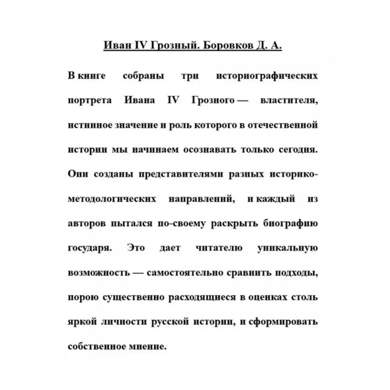Иван IV Грозный. Самый противоречивый государь всея Руси. Боровков Д. А. В книге собраны три историографических портрета Ивана IV Грозного властителя, истинное значение и роль которого в отечественной истории мы начинаем осознавать только сегодня. Они созданы представителями разных историко-методологических направлений, и каждый из авторов пытался по-своему раскрыть биографию государя. Это дает читателю уникальную возможность самостоятельно сравнить подходы, порою существенно расходящиеся в оценках столь яркой личности русской истории, и сформировать собственное мнение.