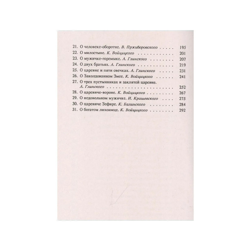 Польские сказки. Сказки К. Балинского, К. Войцицкого, А. Глинского, А. Дыгасинского, И. Крашевского, В. Пржиборовского, З. Моравской и др. С иллюстрациями Ф. Штейна, М. Андриоли, К. Пиллати, Ф. Сытневского и К. Вилькевича. Текст печатается по изданию: СПб., В. И. Голубинский, ценз 1897 г.