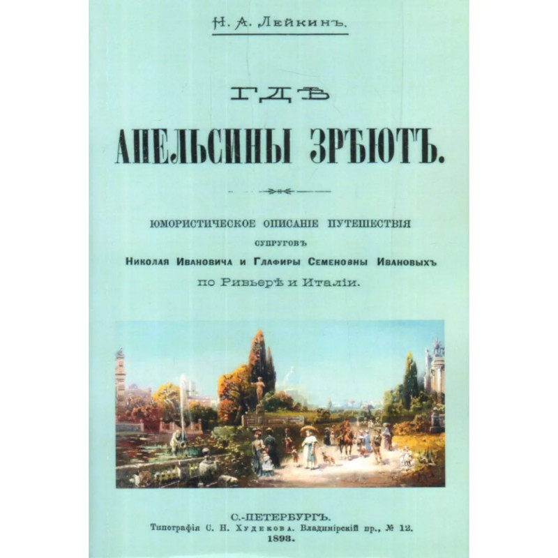 Где апельсины зреют. Юморист. описание путешествия супругов Николая Ивановича и Глафиры Семеновны Ивановых по Ривьере и Италии. Лейкин Н.А. Репринт с издания. СПб. 1893. Лейкин Николай Александрович (1841-1906) - известный юморист. Род. в старинном петербургском купеческом семействе, образование получил в петерб. немецком реформатском училище, был приказчиком, служил в страховом обществе, но скоро оставил коммерческую деятельность. Последние 15 лет Л. принимает деятельное участие в спб. городской думе. Л. чрезвычайно плодовитый писатель. Начав с небольших юмористических очерков и стихотворений в "Русском Мире", "Искре" и др. и поместив в журналах обратившие на себя внимание очерки "Апраксинцы" ("Библ. для Чтения", 1863), "Биржевые артельщики" ("Современник", 1864) и др., Л. с начала 1870-х гг. становится постоянным сотрудником "Петербургской Газеты" и здесь почти каждый день помещает "сцены" из купеческого, мещанского и низшего петербургского быта. Общее число написанных Л. сцен достигает 10 тысяч; только часть их вошла в сорок отдельно изданных томов. Более известные сборники сцен Л.: "Где апельсины зреют" (6 изд.), "Наши за границей" (11 изд.), "Цветы лазоревые", "Наши забавники", "Неунывающие россияне", "Шуты гороховые", "Саврасы без узды" и др. Юмор Л. не всегда гонится за типичностью и очень часто ограничивается стремлением потешать читателя смехотворными словечками. Но есть и серьезные стороны в его произведениях. Несмотря на то, что он почти всю жизнь пишет для аудитории "мелкой прессы", Л. никогда не угождает ее вкусам и по мере сил старается быть обличителем "темного царства". Редактируемый Л. с 1880 г. юмористический журнал "Осколки" свободен от порнографии, составляющей главную приманку многих юмористических изданий. Л. написал также несколько забавных пьес для сцены: "Привыкать надо", "Медаль", "Кум пожарный" и др. Книга изготовлена по технологии "печать по требованию". Тираж 30 экз.