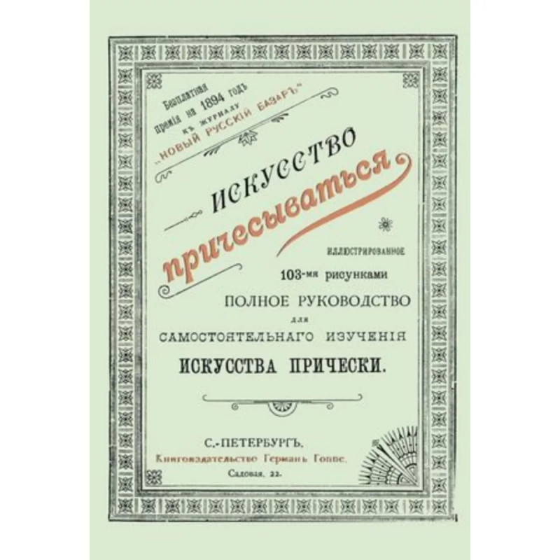 Искусство причесываться. Репринт с издания. Тираж 30 экз. выполнен по технологии print-on-demand. Санкт-Петербург, Г. Гоппе, ценз. 1894. Иллюстрированное руководство для самостоятельного практического изучения искусства прически. Много примеров причесок. Книга изготовлена по технологии "печать по требованию".