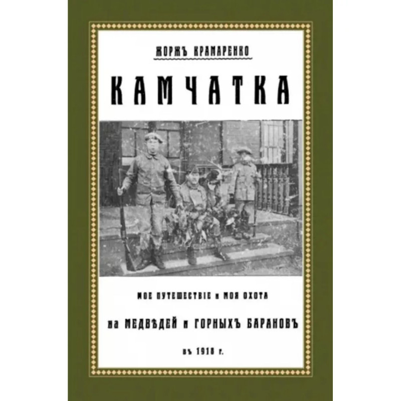 Камчатка. Мое путешествие и моя охота на медведей и горных баранов в 1918 г. Крамаренко Г.Г. Репринт с издания. Берлин, 1919. Григорий Гаврилович Крамаренко (в книге - Жорж Крамаренко) (1899-?). Второй сын Г. А. Крамаренко известного сахалинского рыбопромышленника. В 20-х годах Жорж с младшим братом Александром эмигрировали из России. Судьба его неизвестна.Произведение написано в виде кратких путевых заметок, в форме дневника. Немало страниц дневника посвящено охоте на медведей и на горных баранов, охотничьему лагерю, путешествиям по камчатским рекам и ловле рыбы. Автор увлекательно описывает свой опыт фотографирования медведей с близкого расстояния и многие другие свои приключения и тяготы походной жизни - вплоть до возвращения в Токио. Текст книги дополнен многочисленными иллюстрациями. Путевые заметки Крамаренко были изданы его отцом. Он писал: "Выпуская дневник своего сына Жоржа Крамаренко - "Камчатка", считаю долгом пояснить, что этим мною не преследуются ни материальные цели, ни цели рекламы кого бы и чего бы то ни было. Задача моя заключается в следующем