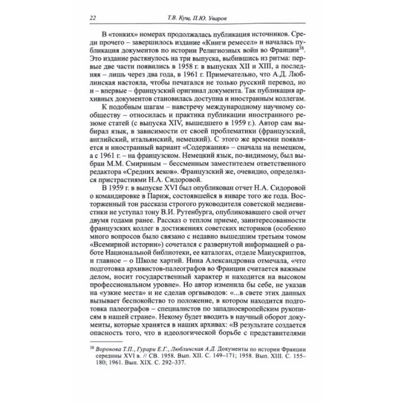 Средние века. Вып. 83(4). Выпуск открывает статья, посвященная 80-летнему юбилею журнала "Средние века". В рубрике "Право и делопроизводство" представлены статьи об особенностях рецепции римского права в Италии и о многоязычии в средневековых английских городах. Еще один раздел посвящен проблемам формирования рыночного права в Англии XIII в. и особенностям венецианской торговли в XV в. Большой раздел отводится публикациям архивных материалов из эпистолярного наследия Е. А. Косминского и М. Я. Сюзюмова. Как всегда, в номере содержатся рецензии на новые отечественные и зарубежные издания по медиевистике.