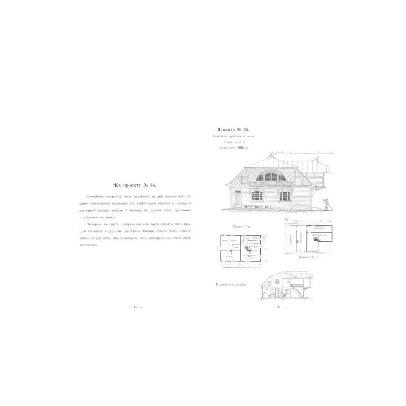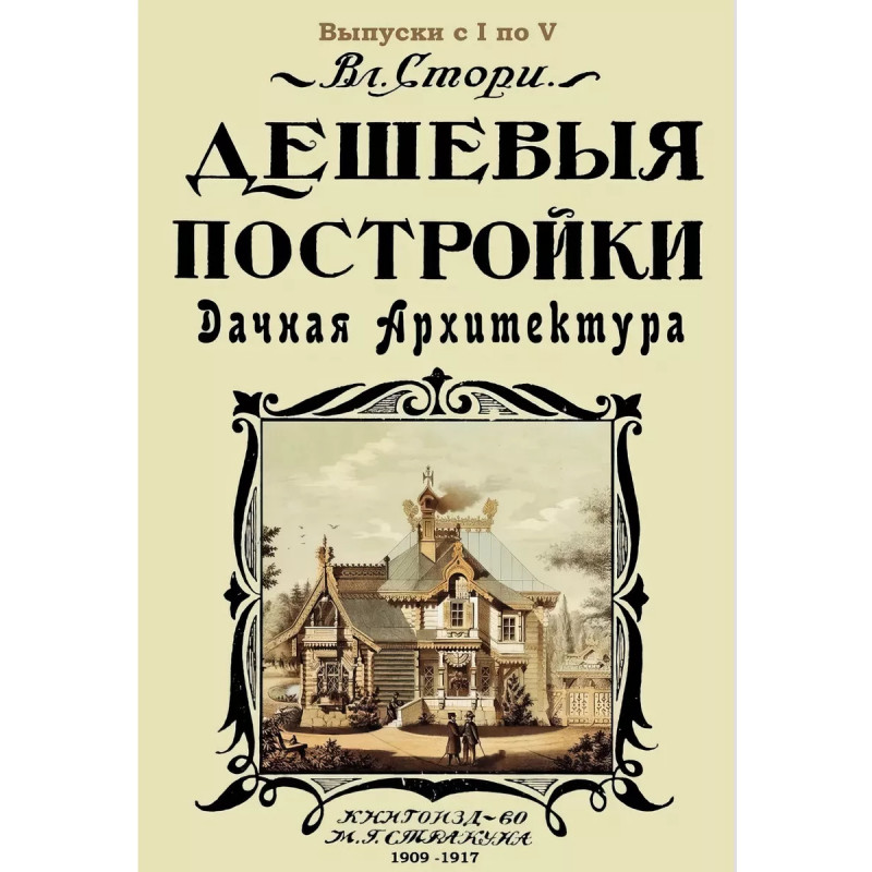 Дешевые постройки. 5 выпусков в 1-й книге. Дачная архитектура. Проекты дач, особняков бревенчатых, каменных и смеш., беседок, оград, ворот и трельяжей в разн. Репринт с изданий. Санкт-Петербург, 1913, 1914, 1917. 2-е дополненное и расширенное издание. В книге собраны наиболее типичные проекты немецких и английских архитекторов из различных альбомов, а помещаемый ниже текст представляет выдержку из объяснительных записок при проектах и вполне знакомит нас с теми требованиями, которые предъявляются к дому-особняку западными европейцами, привыкшими к большему комфорту и удобствам, чем мы, русские.Книга изготовлена по технологии "печать по требованию". Тираж 30 экз.