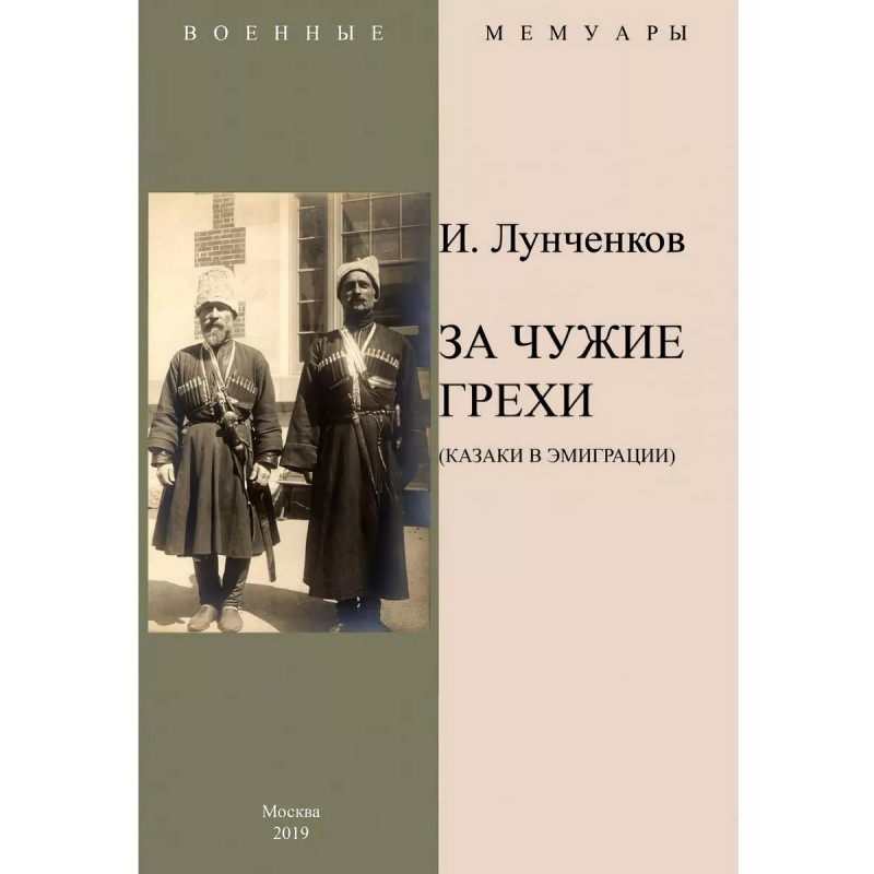 За чужие грехи (Казаки в эмиграции). Лученков И. Репринт с издания. Москва, Ленинград, 1925. Перед Вами переиздание книги войскового старшины Донской армии о исходе из России, после проигранной Гражданской войны, о тяжелой жизни в лагерях в эмиграции и о возвращении на Родину. Об этом очень искренне и правдиво рассказал казак И. Лунченков в своей книге "За чужие грехи (Казаки в эмиграции)". Она вышла в СССР единственный раз в 1925 году с восторженным отзывом командарма 1-й Конной С. М. Буденного. Книга изготовлена по технологии "печать по требованию". Тираж 30 экз.