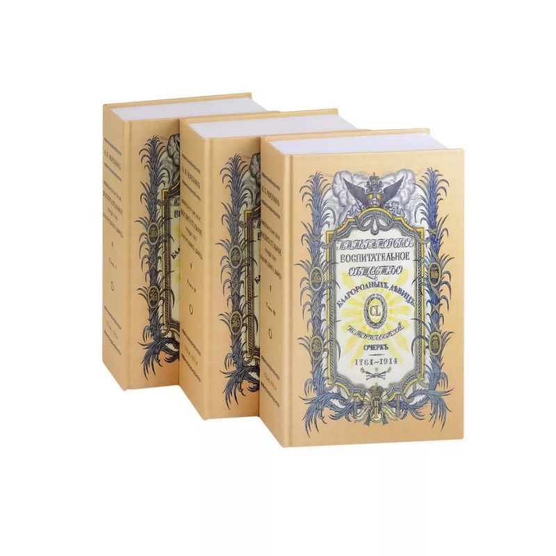 Императорское воспитательное общество благородных девиц. Черепнин Н. П. Репринт с издания. Санкт-Петербург. Гос. тип., 1914-1915. В Богато иллюстрированное юбилейное издание, выпущенное к 150-летию легендарного Смольного института. Основанное по инициативе И.И. Бецкого в соответствии с указом Екатерины II от 5 мая 1764 года воспитательное общество благородных девиц (Смольный институт благородных девиц) стало первым в России закрытым женским учебным заведением для дворянского сословия, положившим начало женскому образованию в стране. Труд Николая Петровича Черепнина "Императорское Воспитательное Общество", считающийся после утраты многих архивных материалов наиболее полным источником сведений о жизни заведения, был издан специально к торжественному юбилею института. Бесценные биографические материалы. Содержание: Том I - Время Императрицы Екатерины II; Время Императрицы Марии Федоровны. Том II - Время Императрицы Александры Федоровны; Время Государыни Императрицы Марии Федоровны. Том III - Приложения и постановления.