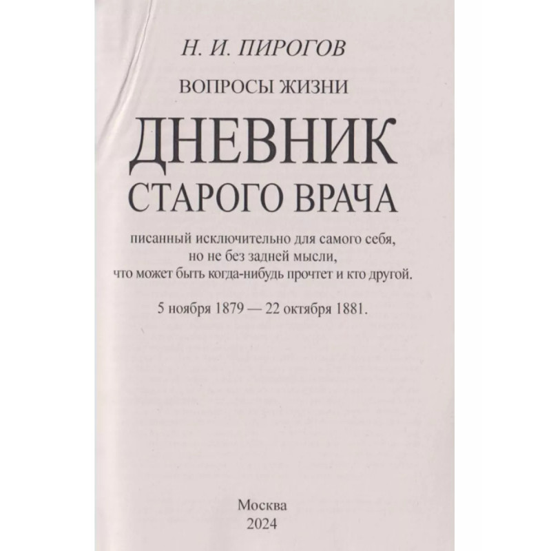Вопросы жизни. Дневник старого врача. Пирогов Н. И. Николай Иванович Пирогов навсегда останется в истории русской медицины как основоположник русской школы анестезии, гениальный военно-полевой хирург и анатом. Его революционные методы спасали жизнь тысячам русских солдат на полях Крымской и Русско-турецкой войны. О нелегком пути сначала студента, а потом врача и рассказывает знаменитый хирург в своих воспоминаниях.
