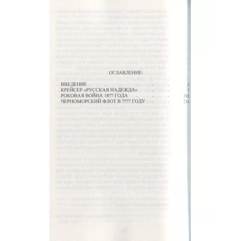 Крейсер "Русская Надежда", Роковая война 18?? года, Черноморский флот в ???? Году (3 романа) Конкевич Александр. Крейсер Русская НадеждаВ своей военно-морской фантастике, изданной в 1886 г., автор описал происходящую в будущем англо-русскую морскую войну По сюжету русский крейсер занимается реидерством в южной Атлантике и Индийском океане, русские моряки топят в Сингапуре английский броненосец Агамемнон, уничтожают английские суда в гавани Бомбея. Полная победа русского флота и поражение Британии в войне. С документальной точностью и знанием дела военным моряком описаны сражения и быт экипажей. Роман пользовался большим успехом у русских читателей. Книга была срочно издана в Англии под названием Русская надежда", или Британия больше не правит морями (англ. The Russia's hope", or, Britannia no longer rules the waves), а описанные в ней схемы боевых действий обсуждались в совете Британского Адмиралтейства. Издан под псевдонимом А. К. Роковая война 18?? годаВоенно-морской фантастический роман, изданный в 1889 г., о грядущей морской войне России против коалиции Италии, Турции и Австро-Венгрии. В процессе боевых действий русский флот наконец-то захватывает черноморские проливы, а итальянская эскадра в отместку высаживает морской десант в районе Владивостока. Издан под псевдонимом А. Беломор. Черноморский флот в ???? годуВоенно-морской фантастический роман, изданный в 1890 г. Нападение Англии и ее союзников на Севастополь в 90-х годах XIX века, ее поражение, захват русской эскадрой Царьграда и проливов (победоносный для России вариант второй Крымской войны). Издан под псевдонимом Максимилиан Гревизерский.