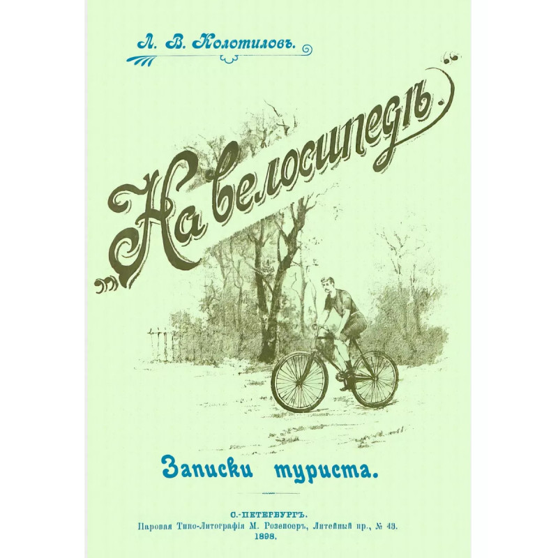На велосипеде. Записки туриста. Колотилов Леонид Владимирович. Репринт с издания. СПб. , 1898. (С рис. и фот. авт. ) Леонид Владимирович Колотилов (1868 - ?) - русский репортер, издатель и спортсмен-велосипедист. Родился в Угличе. Жил в Санкт-Петербурге. Публиковался во многих столичных газетах. Колотилов, называя себя "спортсмэном" и туристом, отправился в 1896 году из Петербурга на Всероссийскую выставку в Нижний Новгород на велосипеде в качестве корреспондента спортивных изданий столицы. История этой поездки и путевые заметки легли в основу этой книги. Тираж 30 экз. выполнен по технологии print-on-demand.