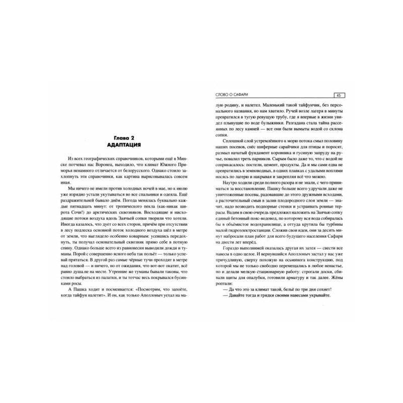 Слово о Сафари. Таганов Е. И. В тридцать лет, имея семью и детей, ломать свою достаточно комфортную жизнь современным парням с высшим образованием как-то совсем не с руки. Но четверо закадычных друзей рискнули и сделали. В 1984 году из благополучного Минска они отправляются на маленький дальневосточный остров, где под видом садоводческого товарищества организуют общину. Десятилетия идет непрерывная борьба за выживание с местной властью, криминалом, местным недоброжелательным населением, ненадежными попутчиками и переменами в стране. И вот, казалось бы, победа достигнута, сверкающий град на холме построен, но победы нет. Внезапная напасть приходит с той стороны, откуда ждать было совершенно невозможно.