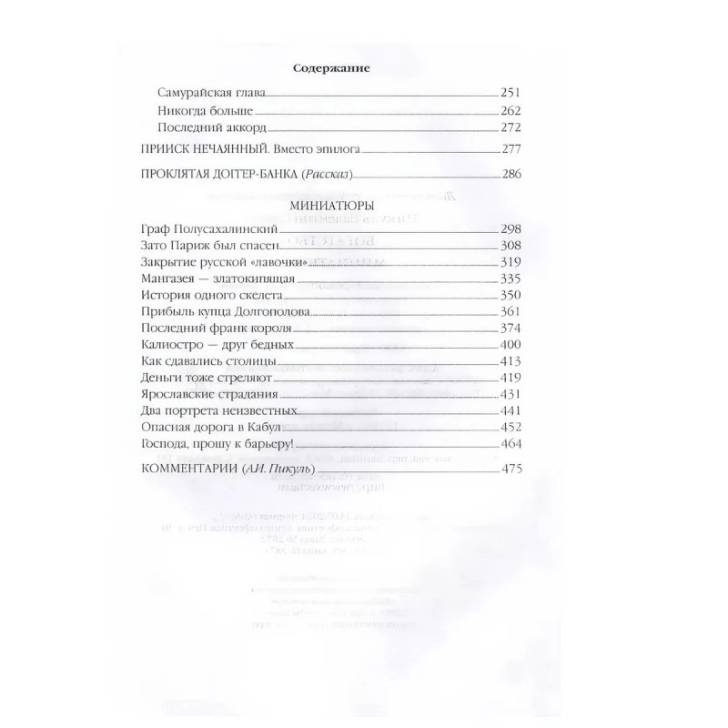 Богатство. Миниатюры. Пикуль В. С. Роман освещает малоизвестные сюжеты обороны Камчатки в период Русско-японской войны 19041905 годов. Описаны колоритные персонажи и уникальная природа полуострова. В книгу также вошли рассказ "Проклятая Доггер-банка" и миниатюры о дипломатах, авантюристах и других ярких исторических личностях XVI начала XX века.