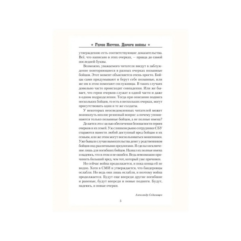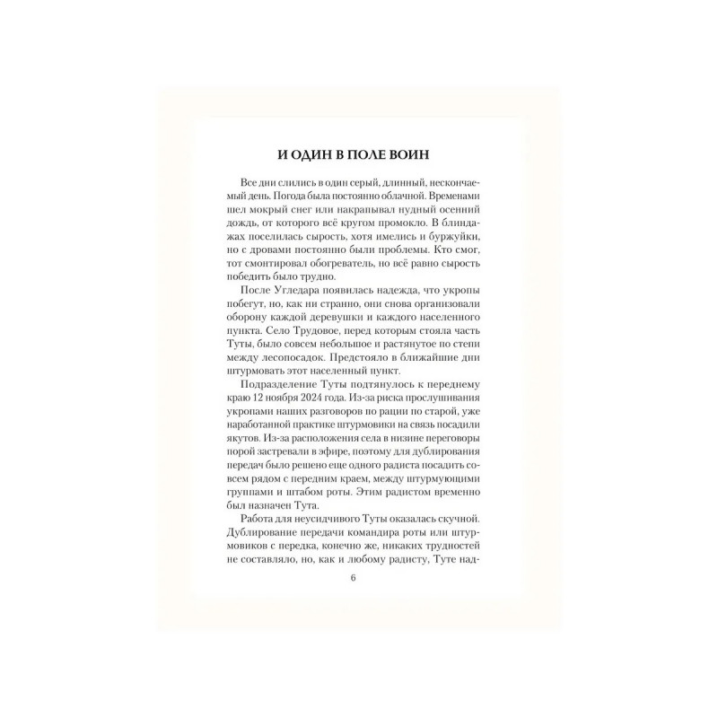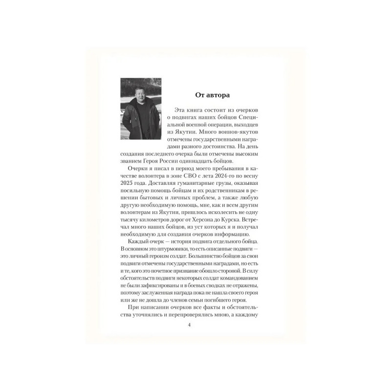 Специальная военная операция. Три года Россия почти в одиночку противостоит вновь поднявшему голову нацизму. Нелегко дается освобождение родной земли, но массовый героизм солдата, как и 80 лет назад, не оставляет врагу ни единого шанса. Книга написана в жанре публицистики и состоит из очерков волонтера, работающего в зоне СВО. Героями книги являются бойцы выходцы из Якутии. В сборник включены очерки об известных на весь мир подвигах бойцов с позывными Тута, Якут, а также других, не менее значимых отважных поступках солдат, совершенных в ходе Специальной военной операции. Захватывающие повествования о реалиях боевых действий дадут возможность читателю окунуться в жизнь воинов и увидеть войну изнутри.