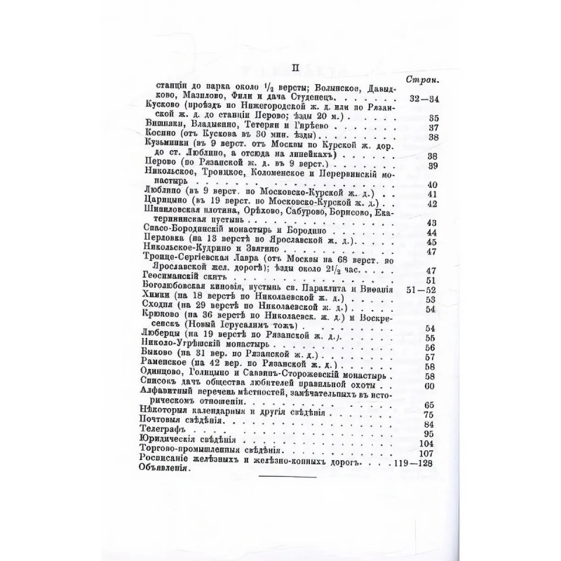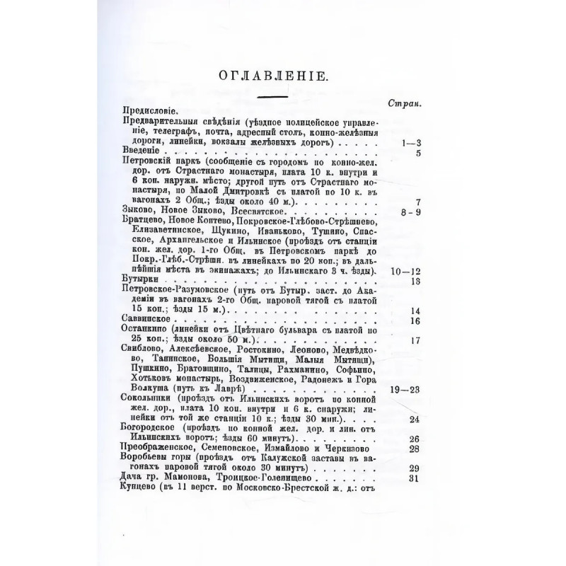 Фейгин Л. А. Спутник дачника по окрестностям Москвы, замечательным по условиям дачной жизни и в историческом отношении. С прил. необходимых календар., юридич. и др. сведений, расписания жел. и конно-жел. дорог и проч. (с картой)Репринт с издания. Москва, 1888. Отдельная карта окрестностей Москвы. С прил. необходимых календар., юридич. и др. сведений, расписания жел. и конно-жел. дорог и проч. (с картой). Эта книга - путеводитель для желающих снять дом, крестьянскую избу или комнату на летний сезон. Леонид Александрович Фейгин (литератор по профессии) собрал сведения о всех дачных местах Подмосковья. Лучшие - с удобными дорогами, купальнями, лавками, ресторанами, с летними театрами, танцевальными павильонами (телефоннами): Перловка, Царицыно, Люберцы, Пушкино. Путеводитель рекомендует их обеспеченным любителям загородного отдыха. Экономным автор советует Зыкова, Свиблово, Щукина и т. д. Описаны достопримечательности, стоимость проезда (поездом, линейкой, извозчиком), расписание конно-железных дорог, почты, тарифы телеграфа и т. д. Тираж 30 экз.