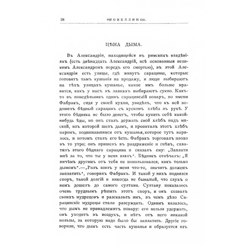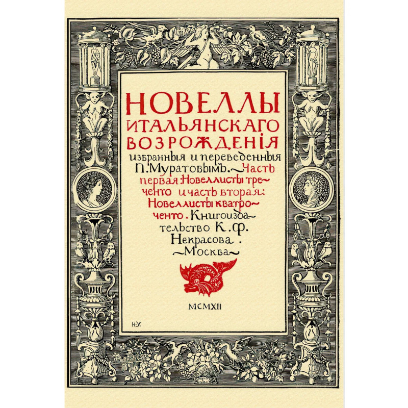Репринт с издания. Москва, 1912. Перевод П. Муратова. Часть 1. Новеллисты треченто ("Новеллино", "Фиоретти", Франческо да Барберино, Боккаччо, Франко Саккетти, Джованни Серкамби, Сер Джованни). Часть 2. Новеллисты кватроченто (Флорентийские анонимы, Бернардо Иличини, Джентиле Сермини, Сан Бернардино, Мазуччо Салернитано). В издание вошли переведённые и собранные вместе лучшие образцы литературы эпохи Возрождения. Павел Павлович Муратов (1881-1950) - прозаик, историк, искусствовед, издатель, один из ярчайших представителей "Серебряного века", автор знаменитых "Образов Италии", лучшей русской книги об итальянском искусстве.