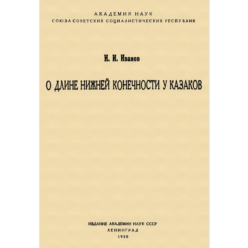 Репринт с издания. Ленинград, 1930. Прекрасный подарок казаку. Сегодня с юмором воспринимается серьезная научная работа 1930 г. Много статистики и сравнений длин ног. Тираж 30 экз. выполнен по технологии print-on-demand.