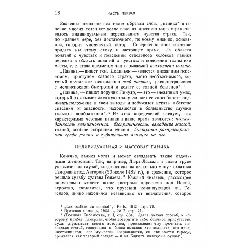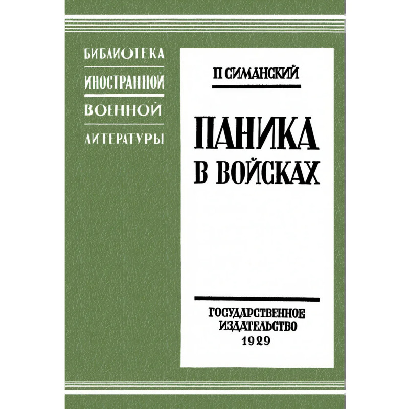 Репринт с издания. Ленинград, 1929. В книге рассмотрены причины паники и случаи паники на европейм театре военных действий в 1805-1920 г. Пантелеймон Николаевич Симанский (1866 1938, Варшава) генерал-лейтенант Русской императорской армии, эмигрант первой волны, военный историк. Во время Первой мировой войны командовал 61-й пехотной дивизией. В 1917 году был произведён в генерал-лейтенанты и назначен командиром 47-го армейского корпуса 6-й армии, которая входила в состав Румынского фронта. Во время Гражданской войны командовал 1-й стрелковой дивизией Отдельного Псковского добровольческого корпуса, преобразованого позже в Северо-Западную армию. С 1919 года находился в эмиграции в Польше. Первоначально работал в Русском политическом комитете, потом занимался научной деятельностью, главным образом военной историей. Сотрудничал с Военным научно-издательским институтом и Военным историческим бюро. Публиковался в польских военных журналах Bellona и Przeglad Historyczno-Wojskowy.