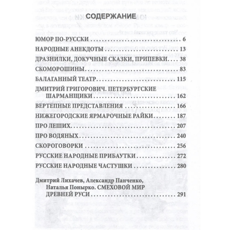 Русская смеховая культура всегда притягивала крупнейших исследователей и всех, кто любит пошутить и интересуется природой юмора. Мы часто говорим об английском, еврейском юморе. А каким был и во многом до сих пор остается русский национальный юмор? Бодрым, задорным, дерзким, часто - оппозиционным. Поэтому первых русских шутников и острословов - скоморохов - преследовали власти. Но они преодолевали все препоны, потому что пользовались народной любовью. В этой книге мы рассказали о судьбах русских балаганщиков, первых актеров, юмористов, анекдотчиков. Вы познакомитесь с шутками, над которыми смеялись наши далекие предки. С тех пор многое поменялось. Но темы, которые мы высмеиваем, остались прежними: богатеи, семейные неурядицы, незадачливые чудаки Эта книга необходима всем, кто любит шутить по-русски и интересуется особенностями смеховой культуры в нашей стране.