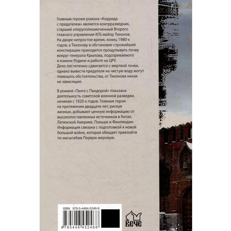 Главным героем романа Коррида с предателем является контрразведчик, старший оперуполномоченный Второго главного управления КГБ майор Тихонов. На дворе непростое время, конец 1980х годов, а Тихонову в обстановке строжайшей конспирации приходится прощупывать почву вокруг генерала Крылова, подозреваемого в измене Родине и работе на ЦРУ. Дело постепенно сдвигается с мертвой точки, однако вывести предателя на чистую воду могут помешать обстоятельства, от Тихонова никак не зависящие. В романе Танго с Пандорой показана деятельность советской военной разведки начиная с 1920?х годов. Главные герои на протяжении двадцати лет, рискуя жизнью, добывают ценную информацию от высокопоставленных источников в Китае, Латинской Америке, Польше и Финляндии. Информация связана с подготовкой к новой большой войне, которая обещает превзойти по масштабам Первую мировую.