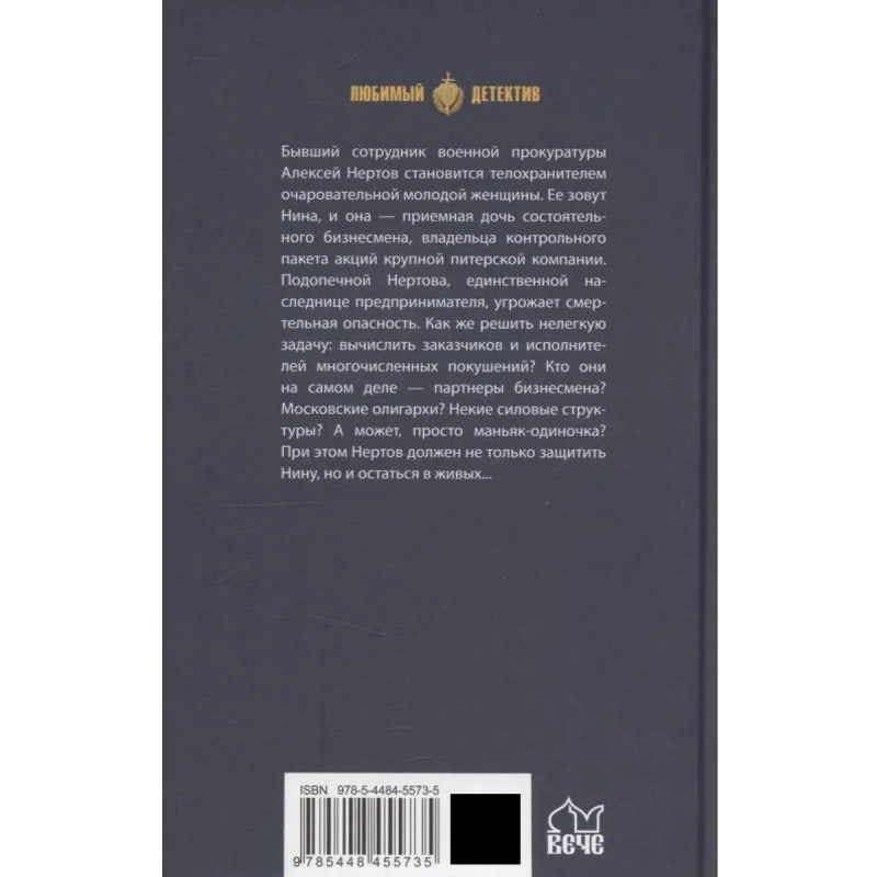Бывший сотрудник военной прокуратуры Алексей Нертов становится телохранителем очаровательной молодой женщины. Ее зовут Нина, и она приемная дочь состоятельного бизнесмена, владельца контрольного пакета акций крупной питерской компании. Подопечной Нертова, единственной наследнице предпринимателя, угрожает смертельная опасность. Как же решить нелегкую задачу: вычислить заказчиков и исполнителей многочисленных покушений? Кто они на самом деле партнеры бизнесмена? Московские олигархи? Некие силовые структуры? А может, просто маньяк-одиночка? При этом Нертов должен не только защитить Нину, но и остаться в живых...