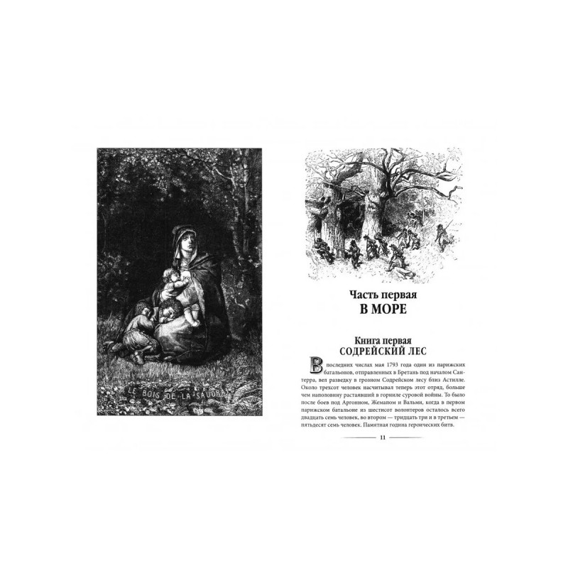«1793‑й — год, схожий с грозою своим гневом и своим величием». В этот год нерешительный король Людовик XVI удивил свой народ — смело шагнул на эшафот, прощая всех. Народ возликовал, растерялся, ошалел. И Франция стала новым царством — царством террора. Кто там был прав, кто виноват — на эти вопросы своими книгами пытались ответить Бальзак, Дюма, Диккенс... Вслед за их романами-драмами о Великой революции убеленный сединой и горьким опытом Гюго решился создать свой последний роман-трагедию — роман, ни на что не похожий, трагедию эпохи дикой охоты, где зверь, загонщик и ловчий непостижимо и фатально меняются ролями.События этой грандиозной энеиды развиваются и на суше, и на море — сначала в штормовой Бретани, затем в пьяном от страха Париже и, наконец, в оскалившихся джунглях Вандеи.
