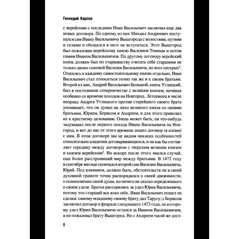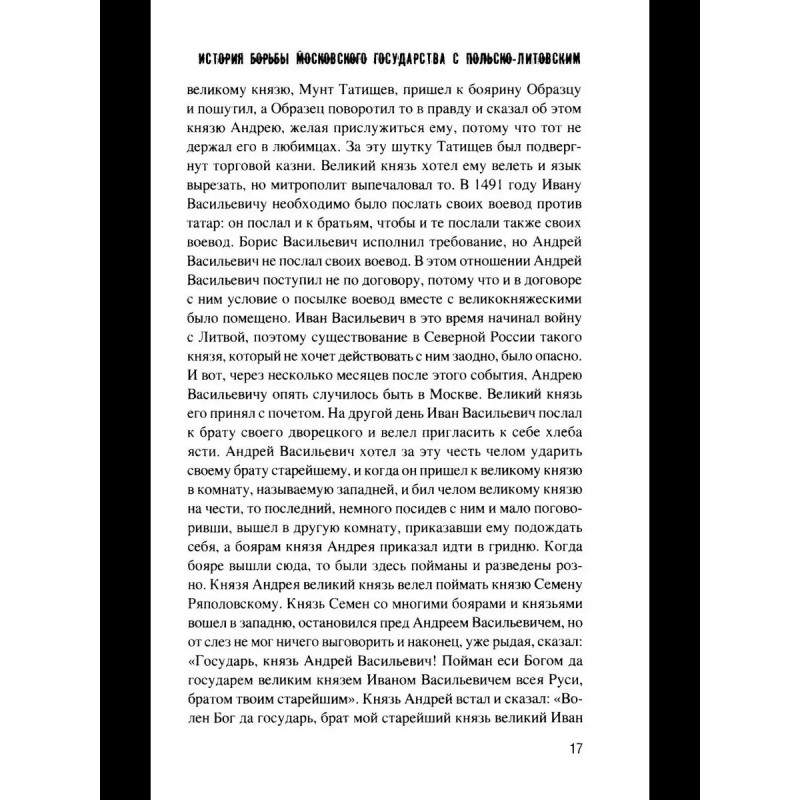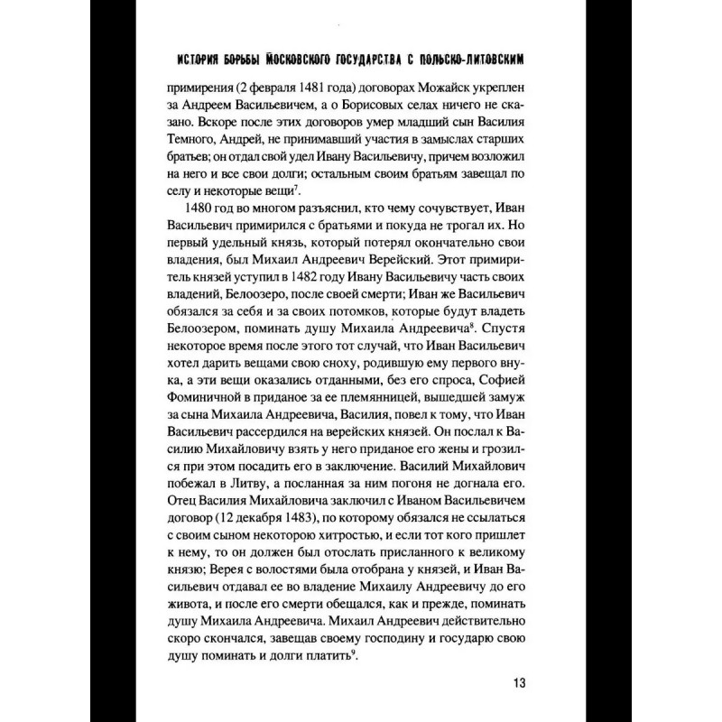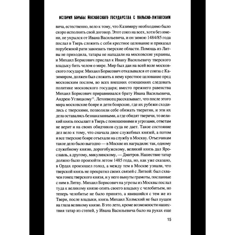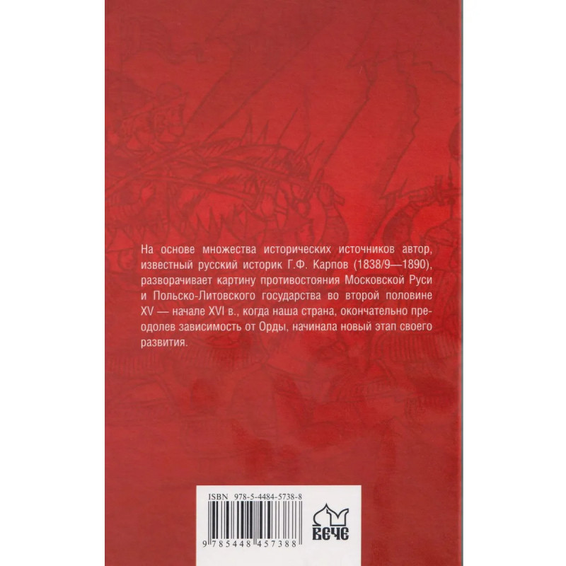 На основе множества исторических источников автор, известный русский историк Г.Ф. Карпов (1838/91890) разворачивает картину противостояния Московской Руси и Польско-Литовского государства во второй половине XV начале XVI вв., когда наша страна, окончательно преодолев зависимость от Орды, начинала новый этап своего развития.