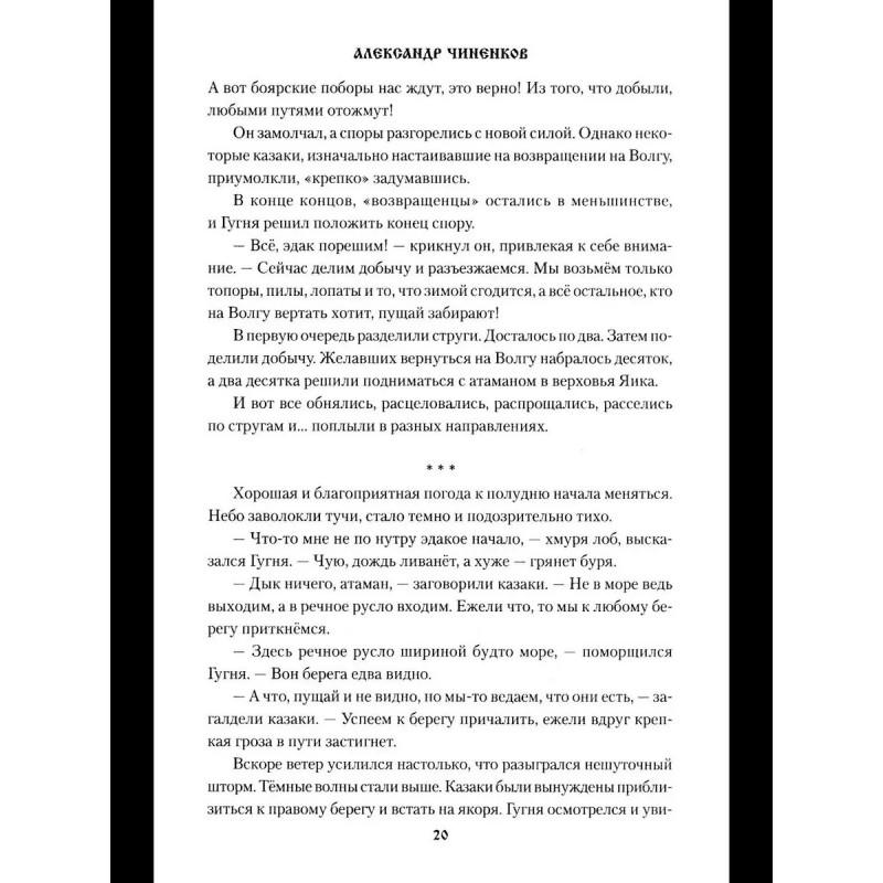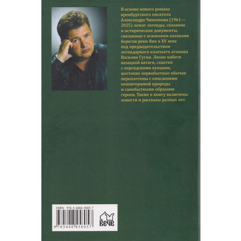 В основе нового романа оренбургского писателя Александра Чиненкова (1961—2025) лежат легенды, сказания и исторические документы, связанные с освоением казаками берегов реки Яик в ХV веке под предводительством легендарного казачьего атамана Василия Гугни. Лихие набеги казацкой ватаги, схватки с персидскими купцами, жестокие первобытные обычаи переплетены с описаниями неповторимой природы и самобытными образами героев. Также в книгу включены повести и рассказы разных лет.