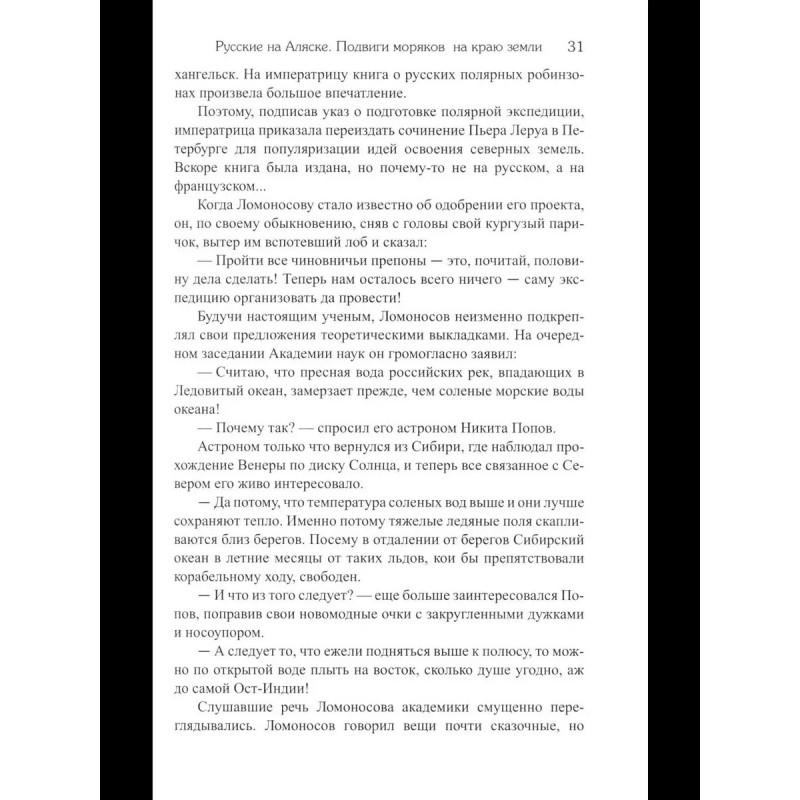 Откройте для себя героические страницы освоения Русской Америки в новой книге известного российского писателя-мариниста, капитана 1го ранга Владимира Шигина! Читателя ждет захватывающее путешествие в эпоху бесстрашных мореплавателей, отважных первопроходцев и предприимчивых промысловиков по неизведанным землям, где каждый день был подвигом, а смелость и находчивость становились залогом выживания. Автор расскажет о дерзком проекте плавания наших моряков через Северный полюс на Камчатку и на Аляску, предложенном академиком Михаилом Ломоносовым. Об открытии и исследованиях Алеутских островов, а также о невероятных приключениях знаменитых командиров шхуны Юнона и тендера Авось лейтенанта Николая Хвостова и мичмана Гавриила Давыдова на просторах Аляски и в Калифорнии. Владимир Шигин подробно описывает русско-индейскую войну и участие в ней шлюпа Нева во время первой кругосветной экспедиции российского флота.