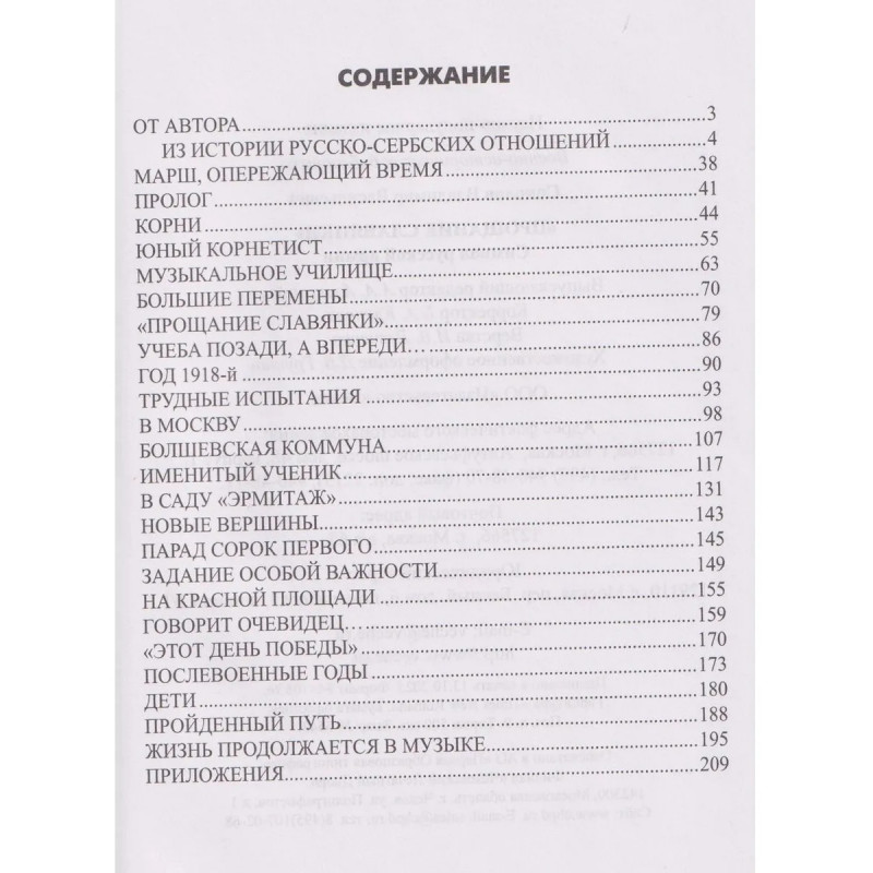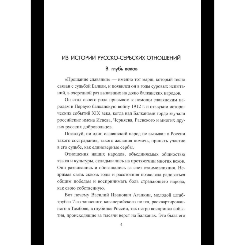 Это книга об авторе бессмертного марша Прощание славянки композиторе и дирижёре Василии Ивановиче Агапкине, об истории его марша, перешагнувшего своё время и сегодня звучащего так же свежо и мощно, как и более ста лет назад, когда он был создан в 1912 году. В книге использованы редкие архивные материалы, документы, фотографии, приводятся уникальные интервью автора книги со сподвижниками Агапкина, его близкими, участниками исторического парада 7 ноября 1941 года на Красной площади. В конце книги приводятся справочные сведения о некоторых композиторах, дирижёрах и исполнителях, творчески связанных с В.И. Агапкиным в области военной музыки.