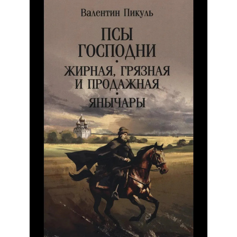 Аннотация к книге "Псы господни. Жирная, грязная и продажная. Янычары" Пикуль В. С.:Три не издававшихся при жизни романа гения отечественной исторической прозы. «Псы господни» — это Россия, истерзанная безумным Иваном Грозным, измученная опричниной... Испания, выжженная кострами инквизиции — опоры трона Филиппа II... Страшное время религиозной истерии и болезненного распутства, бесконечных войн и казней. «Героиней» романа «Жирная, грязная и продажная» является нефть... А роман «Янычары» рассказывает о сложном и трагическом противостоянии Запада и Востока после гибели Византии.