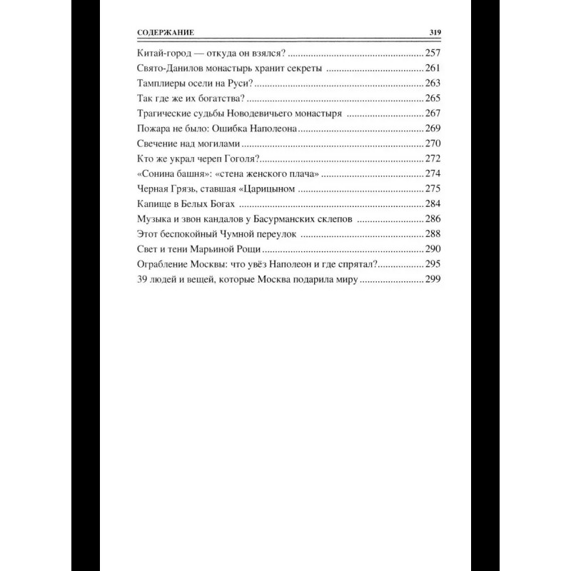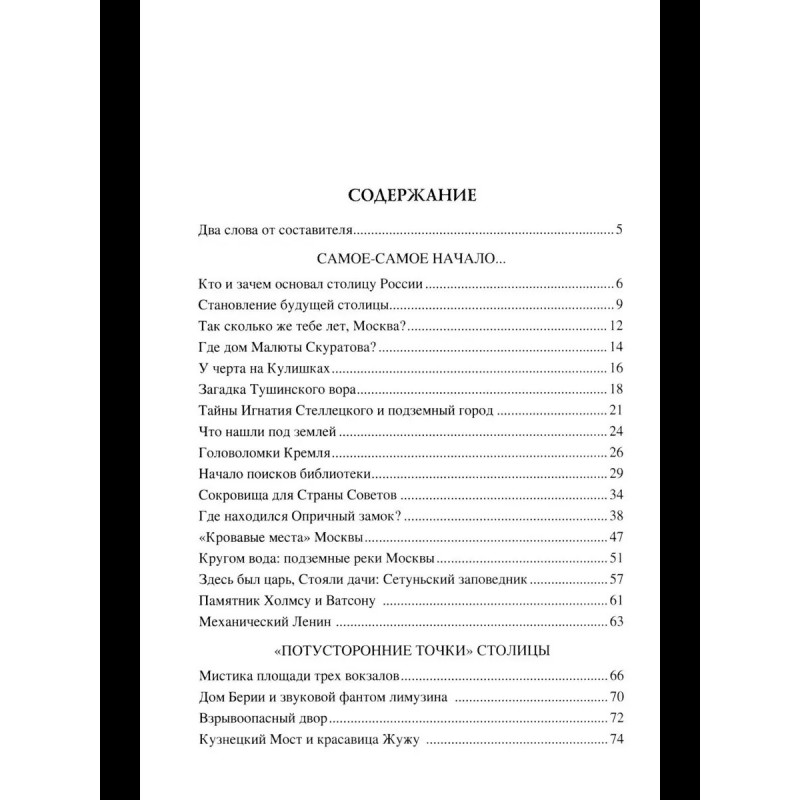 Москва знаменита своей древней историей и великими людьми некогда населявшими ее. Как и многие столицы мира ее стены и мостовые хранят множество тайн, разгадать которые вот уже не один век пытаются исследователи. Таинственные особняки, исчезнувшие улицы и переулки, многокилометровые подземные лабиринты и секретные бункеры, печальные некрополи и богатые загадочным прошлым башни, площади и проспекты. Об этом и многом другом рассказывает очередная книга серии.
