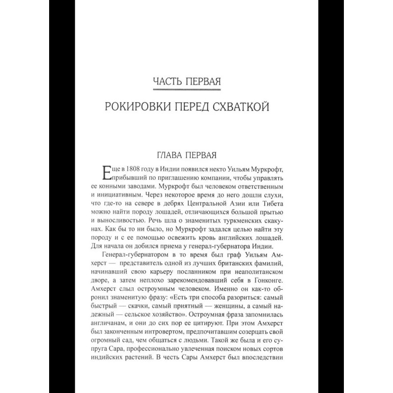 С окончанием последней Русско-персидской войны 18261828 годов в Закавказье и после инсценированного англичанами убийства нашего посла в Тегеране А.С. Грибоедова закончился период военного противостояния между Россией и Персией. Однако настоящая Большая Игра (геополитическое противостояние России и Англии) еще только разворачивалась, и все ее главные события были впереди. Отныне гроссмейстерам Игры как с одной, так и с другой стороны было очевидно, что новым полем противодействия России и Англии станут степи, пустыни и горы Средней Азии. Россия контролировала степи вокруг Оренбурга, а англичане только вышли к предгорьям Гиндукуша. Противостояние переходило в стадию атак, защиты, позиционного маневрирования, комбинаций и жертв...