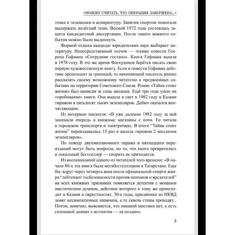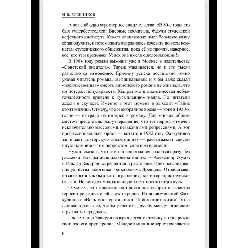 Роман «Тайна стоит жизни» (1982) Зуфара Фаткудинова (1940—2019) относится к поздним образцам советского шпионского романа. Писатель, используя опыт своих предшественников, предлагает читателю обновлённый вариант всеми любимого жанра. Действие книги разворачивается в конце 1930‑х годов в Поволжье. Бандитское подполье активизируется в крупном городе Светловолжске. Неподалеку от него начинает работать таинственный радиопередатчик. Многие следы ведут в старинный Волжский монастырь. Молодым чекистам Ильдару Закирову и Александру Жукову предстоит раскрыть тайны прошлого и настоящего, часть которых сокрыта в мрачных подземных ходах. Действие в романе развивается стремительно и непредсказуемо. Советский бестселлер начала 1980‑х возвращается к читателю.