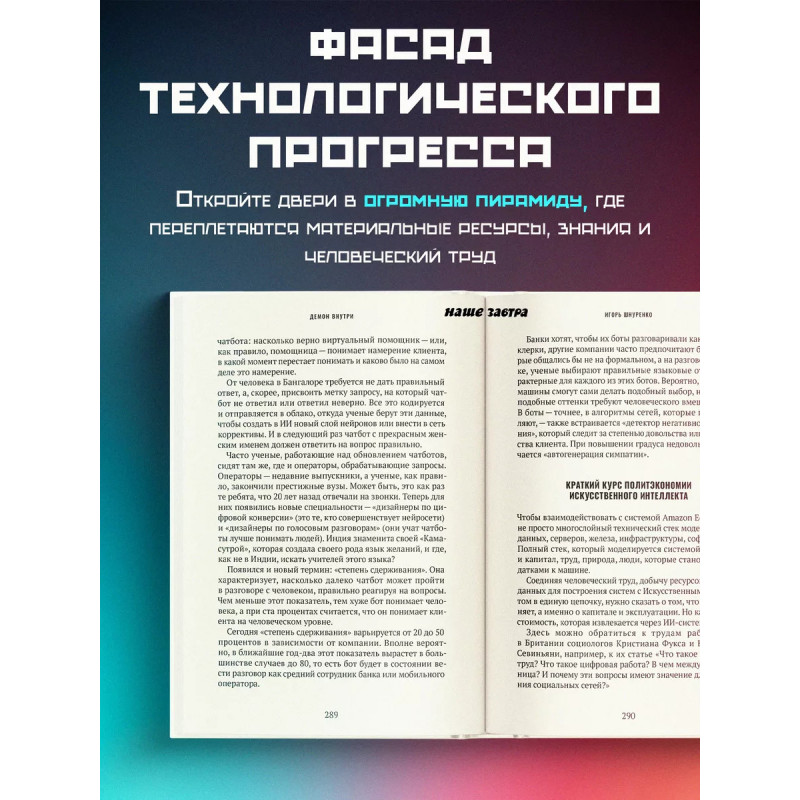 Демон внутри. Анатомия искусственного интеллекта. Криптожурналист и исследователь искусственного интеллекта Игорь Шнуренко, известный под псевдонимом Cyril Gilson, приглашает читателя в анатомический театр, в котором вскрывает организм самой мощной и таинственной индустрии мира, представляющую собой огромную пирамиду из материальных ресурсов, знаний и подневольного человеческого труда. Величайшее творение человека, искусственный интеллект, было создано для того, чтобы привести людей к полной и безграничной свободе. Однако, человечество оказалось в новом рабстве. Возможно, это рабство еще более цинично и аморально чем то, что было в Древней Греции. Как случилось, что интернет, который был придуман для того, чтобы объединить народы, превратился в средство атомизации общества, сделав нас всех эгоистами-одиночками? Что такое искусственный интеллект и кто за ним стоит? Чего ждать от технологий, которые вышли прямо из сериала Черное зеркало ?