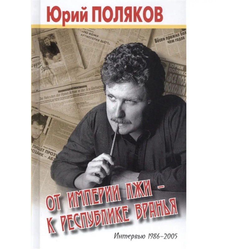 От империи лжи к республике вранья. Интервью 1986-2005. Собрав воедино интервью, охватывающих период с 1986 по 2020 год, Юрий Поляков предлагает читателям своего рода "невольный дневник", наполненный множеством мыслей, подробностей и деталей, помогающих понять "рок событий", а также внутреннюю эволюцию автора. Писатель не боится показаться мятущимся, ошибающимся и отчасти, может быть, разочарованным человеком, но при всём этом он предельно честен, откровенен и независим в своих суждениях и оценках. Так уж повелось, что настоящий писатель в России традиционно вовлечён в политику и общественную жизнь, поэтому проблемы, затронутые в интервью, выходят далеко за рамки литературы. В первом сборнике "От империи лжи - к республике вранья" (1986-2005) обсуждаются такие важные события, как перестройка, августовский путч, развал СССР, расстрел Белого дома, первая чеченская война. Автор достаточно резко высказывается о ельцинских реформах и новой власти, критикует ангажированность СМИ, выступает в защиту традиционных культурных ценностей.