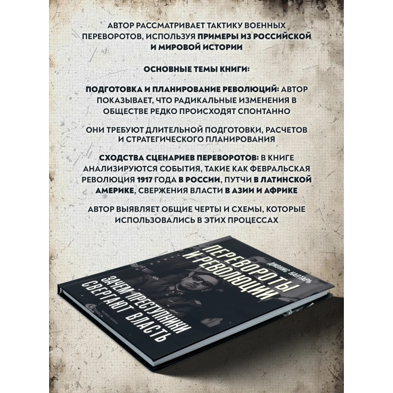 I Перевороты и революции. Зачем преступники свергают власть. Радикальное изменение в обществе, именуемое революцией, путчем или переворотом, готовится задолго до формального начала уличных беспорядков. Свержение власти - это спланированное и хорошо продуманное действие. В издании подробно рассматривается тактика военных переворотов, осуществлённых в разных странах. Опираясь на множество примеров из российской и мировой истории, автор иллюстрирует ключевые элементы схемы, неоднократно использованной мятежниками. Ведь и февральская революция в России 1917 года, и путчи в Латинской Америке, и свержение власти в Азии и Африке, и перевороты в других государствах строились по схожим сценариям. Как схемы, сходные с путчами, могут применяться не только в политике, но и в других сферах жизни? Какие важные черты характерны для любого удачного мятежа? Издание предназначено для всех, кто глубоко интересуется историей и её тесной связью с современными событиями.