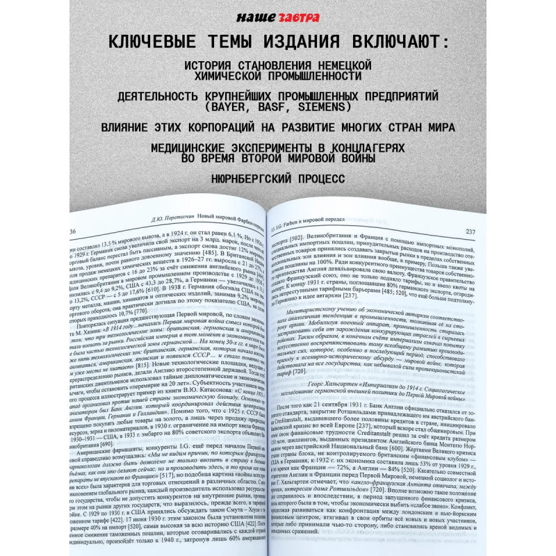 Новый мировой Фарбен-порядок. Осмысление истории капитализма невозможно без анализа мировых финансовых центров. Настоящее издание посвящено первой в мире транснациональной корпорации времён Третьего Рейха - I. G. Farben. На её примере рассматривается история Германии и всего мира. Автор подробно повествует о деятельности крупнейших предприятий, - таких как Bayer, BASF, Siemens и др., - определивших ход развития жизни во других странах. Дмитрий Перетолчин приводит примеры и делает выводы. В отдельных главах он рассказывает о становлении немецкой химической промышленности, о медицинских экспериментах в лагерях смерти Второй Мировой, о Нюрнбергском процессе. Книга снабжена многочисленными фактическими материалами, цитатами и любопытными историческими документами.