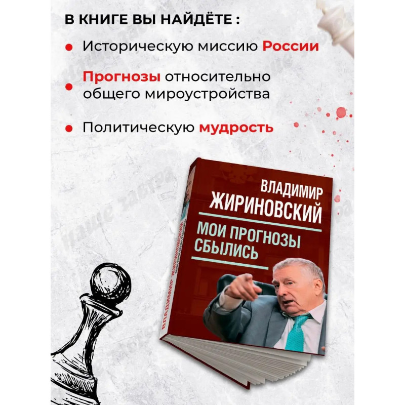 Мои прогнозы сбылись. В 1993 году книга Владимира Жириновского "Последний бросок на юг" стала бестселлером. Тогда политику удалось предвидеть ход исторических процессов на десятилетия вперед. В своей новой работе лидер ЛДПР делится с читателями концепцией политического и экономического развития России прошлого, настоящего и будущего. А также даёт прогнозы относительно общего мироустройства. Что может стать причиной третьей мировой войны? Как будут развиваться события в закавказском регионе? В чём состоит политическая мудрость? Кто мешает США господствовать в мире? Каков единственный способ спасти Турцию? Как усмирить зависть и конкуренцию между нациями? Каков эффективный способ предотвратить кровавые конфликты на Юге, на Ближнем Востоке? В чём заключается историческая миссия России? Что является главным условием для формирования крепкого Российского государства? Глубокое знание истории позволяет автору делать интересные выводы и развивать любопытные идеи.