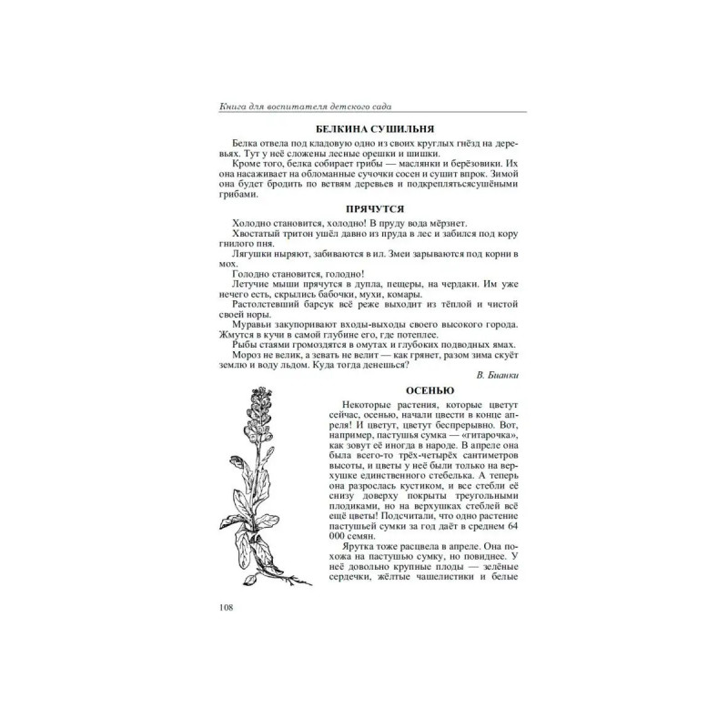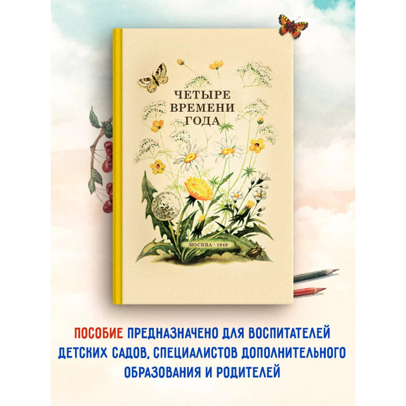 Четыре времени года. Книга для воспитателя детского сада. 1949 год. Любовь к природе, осознание её красоты и совершенства, правильное и гармоничное восприятие окружающего мира - все эти качества необходимо воспитывать с раннего детства. Изучая смену времён года, можно наглядно познакомиться со всеми природными явлениями, и понять, каким образом жизнь растений и животных связана с внешней средой. В настоящем издании все сезоны проиллюстрированы соответствующими фрагментами из произведений А. Пушкина, М. Пришвина, В. Бианки, Ф. Тютчева, С. Аксакова, Л. Толстого, К. Паустовского, К. Ушинского, Е. Благининой, М. Горького, Е. Баратынского. Книга также содержит народные приметы, пословицы, загадки, скороговорки, игры и тематические вопросы. Пособие предназначено для воспитателей детских садов, учителей младших классов, специалистов дополнительного образования и родителей.