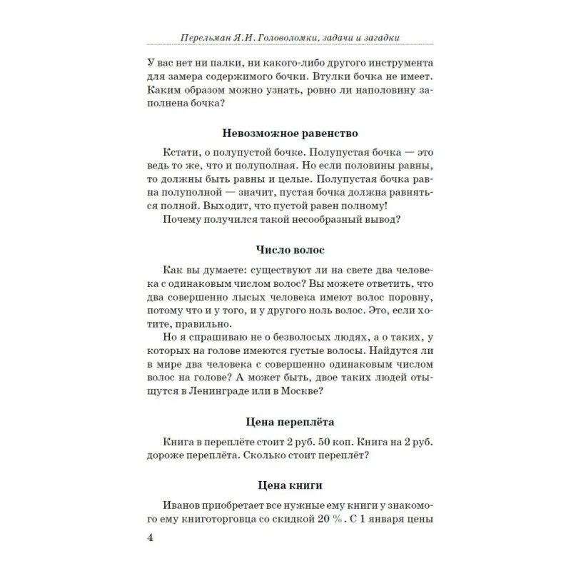 Головоломки, задачи и загадки. Интеллектуальный досуг это увлекательная и одновременно чрезвычайно полезная форма проведения свободного времени. В настоящем издании собраны головоломки и задачи, составленные известным математиком, физиком, педагогом Яковом Перельманом. Его задания это маленькие миниатюры, развивающие ум, сообразительность, интеллект, логику, внимательность, здравый смысл и творческие способности. Также они приучают к нестандартному, нешаблонному мышлению и тренируют память. Автор придумывал свои задачи с юмором и большим знанием человеческой психологии. Книга идеально подходит для занятий и игр в дружеских компаниях. Детям она поможет лучше усвоить материал, пройденный в школе, а взрослым даёт возможность освежить и проверить свои познания в математике и физике.