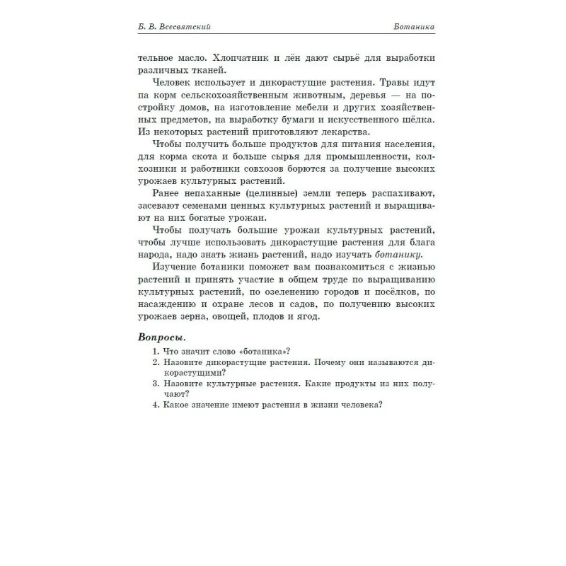 Ботаника. Учебник для 5-6 классов средней школы. 1957 год. Ботаника - наука о растениях, которая изучает их происхождение, развитие, внешнее и внутреннее строение, классификацию, распространение по земной поверхности, а также охрану и экологию. Знание ботаники необходимо, так как при правильном применении растения могут приносить огромную пользу в различных сферах человеческой жизнедеятельности. Настоящее издание представляет собой оригинальный текст, выпущенный в 1957 году. Учебник составлен известным советским педагогом, методистом-биологом, профессором Борисом Всесвятским, который одним из первых разработал школьные программы по биологии. Пособие содержит подробные сведения о дикорастущих и культурных растениях, а также интересные опыты и примеры, помогающие лучше усвоить пройденный материал.
