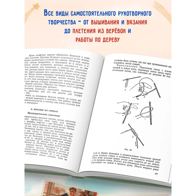 Дети познают мир посредством игры. Важно, чтобы она была не просто бездумным развлечением, но обладала также поучительными и практическими свойствами. Рукоделие прекрасный способ увлечь ребёнка интересным и полезным занятием. Кроме того, оно развивает руки, глаза, помогает воспитанию художественного вкуса, приучает к аккуратности, воспитывает усидчивость и настойчивость. В настоящем издании, представляющим собой оригинальный текст советского пособия, собраны все виды самостоятельного рукотворного творчества от вышивания и вязания до плетения из верёвок и работы по дереву. Авторы подробно объясняют, как сделать рабочий процесс понятным и увлекательным для детей разных возрастов.