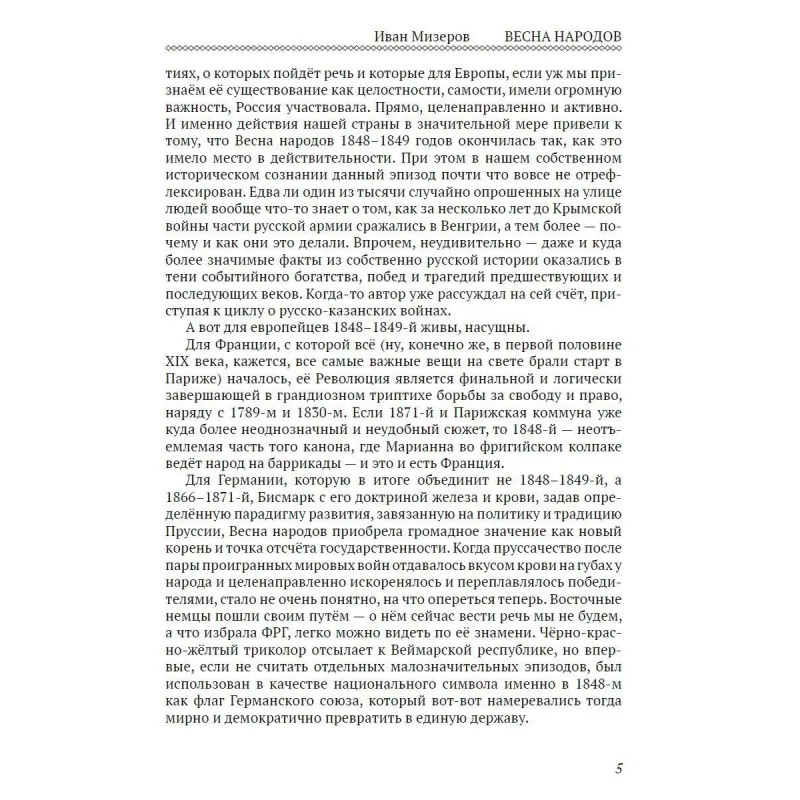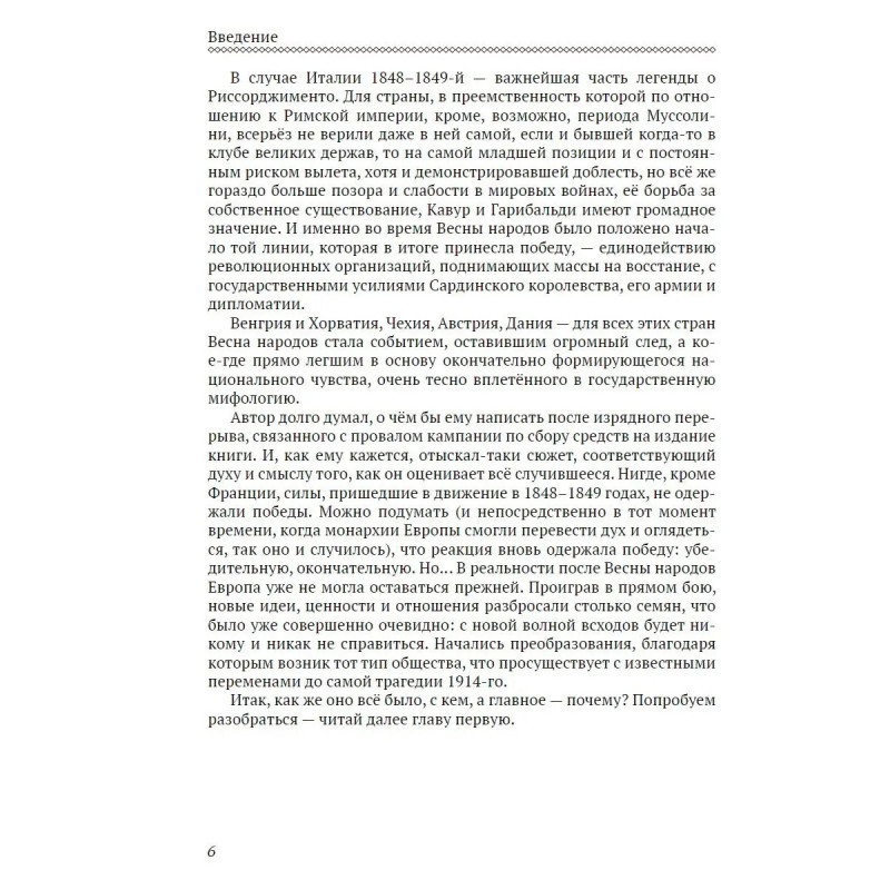 Весна народов. Предыстория и ход всеевропейской революции 1848-1849 годов. События 1848-1849 годов очень слабо отрефлексированы в отечественном историческом сознании. Едва ли один из тысячи случайно опрошенных на улице людей вообще что-то знает, к примеру, о том, как за несколько лет до Крымской войны части русской армии сражались в Венгрии. Тем более почему они это делали. Между тем для европейцев 1848-1849 годы живы и насущны. Франция, Германия, Италия, Венгрия, Хорватия, Чехия, Австрия, Дания во всех этих странах Весна народов оставила огромный след, легла в основу окончательно формирующегося национального чувства, тесно вплетенного в государственную мифологию. Нигде, кроме Франции, силы, пришедшие в движение в 1848-1849 годах, не одержали победы. Однако после Весны народов Европа уже не могла оставаться прежней. Проиграв в прямом бою, новые идеи, ценности и отношения разбросали столько семян, что всем стало очевидно со следующей волной всходов никому и никак не справиться.