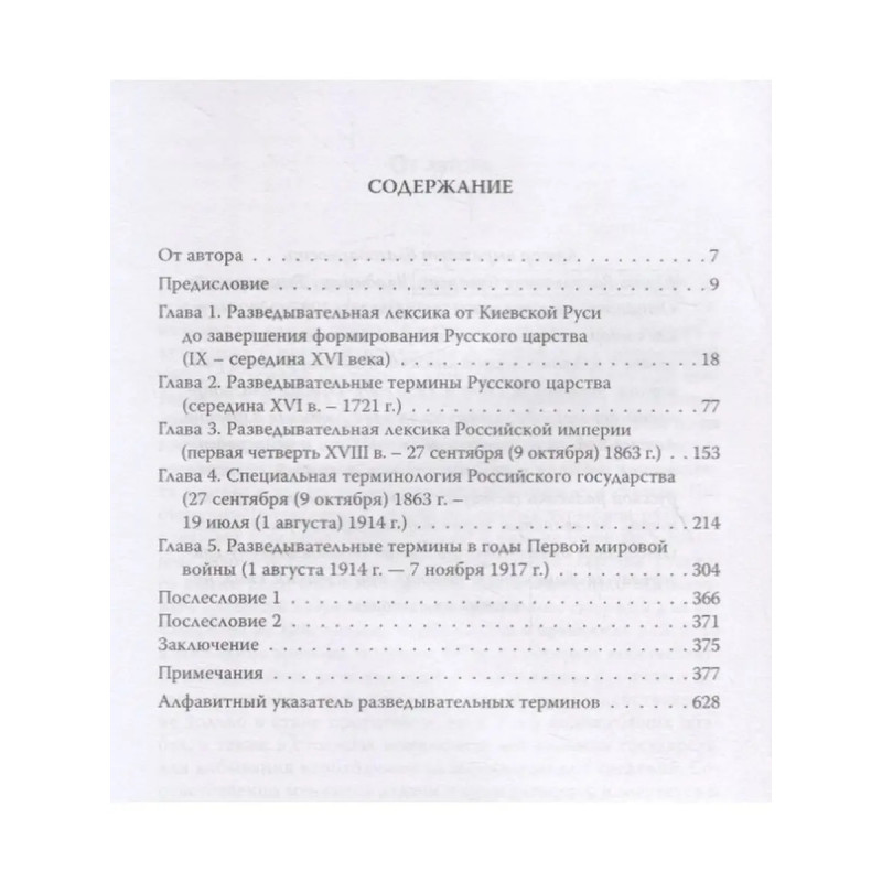 ISBN 9785907028746. С момента образования Киевской Руси разведка была делом государственным, тайным. В настоящей работе рассказывается о появлении и развитии в русском языке слов, присущих военной разведке, на каждом историческом этапе строительства Российского государства. Каждый вновь появляющийся разведывательный термин подтверждается соответствующей цитатой из источников. Одновременно дается контекст, поясняющий обстановку, в которой и в связи с чем появилось это слово. Наряду с этим в большинстве случаев рассказывается, насколько полученная разведывательная информация отражала действительность.. В книге прослеживается появление и исчезновение одних разведывательных терминов наряду с закреплением других, всего больше 400 наименований. Автор доктор исторических наук, профессор, написавший более 10 монографий по истории отечественной военной разведки.