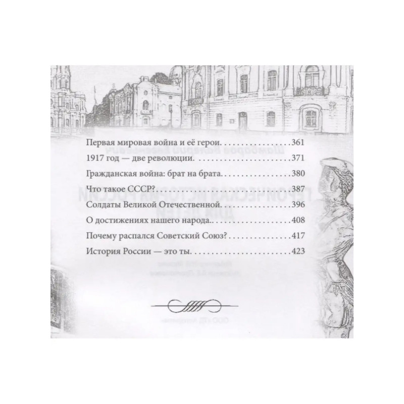 ISBN 9785907149526. Эта книга - особенная. Она представляет полную историю нашей страны с древнейших времён до сегодняшних дней. А написана она простым и лёгким языком, понятным для ребят среднего и даже младшего школьного возраста. Илья Муромец - и маршал Жуков. Ермак Тимофеевич - и Юрий Гагарин. Скифы - и казаки. Гусары - и советские полярники. Проповедники христианства - и солдаты Чечни.. Новая книга известного писателя-историка Валерия Шамбарова станет настоящим подарком и для ребят, и для их родителей. Для всех, кто любит Россию и хочет, чтобы она была великой державой.